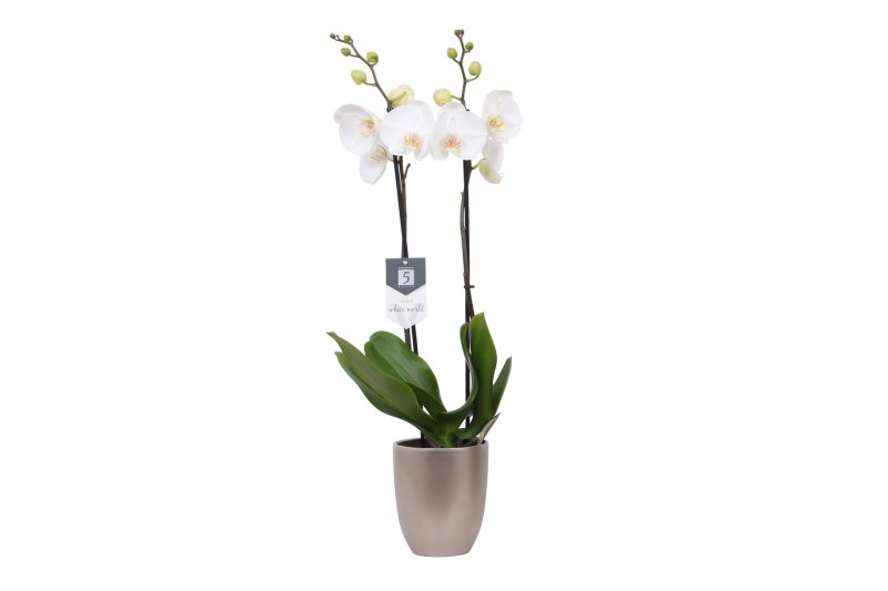 Phalaenopsis white world 2 tak - 16+ bloemen champagne keramiek