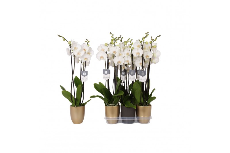 Phalaenopsis white world 3 tak - 18+ bloemen mix keramiek
