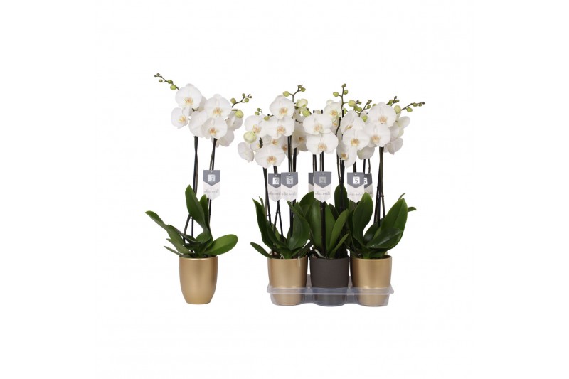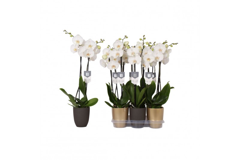 Phalaenopsis white world 2 tak - 14+ bloemen mix keramiek