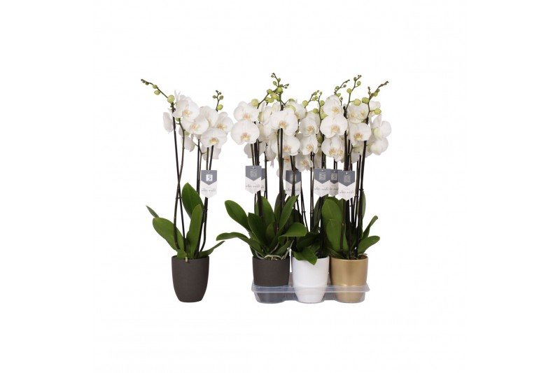 Phalaenopsis white world 3 tak - 18+ bloemen mix keramiek