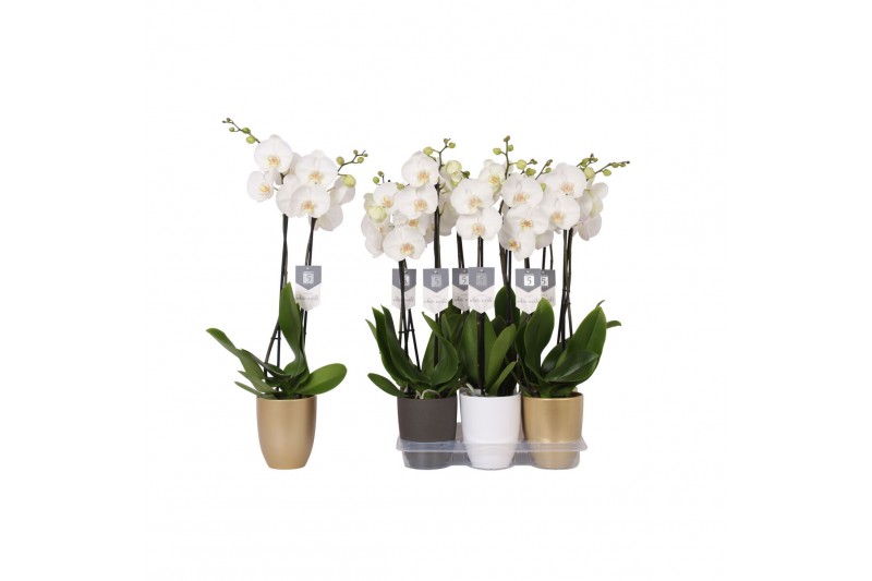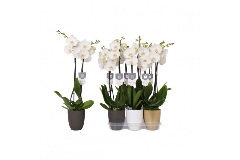 Phalaenopsis white world 2 tak - 14+ bloemen mix keramiek