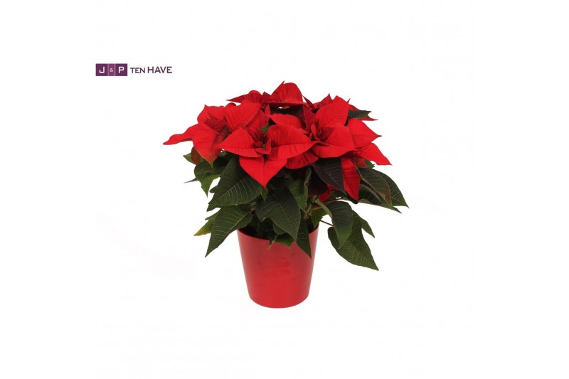 Euphorbia pul. christmas eve 6+ Bloem, Rood Keramiek