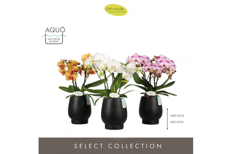 Phalaenopsis mix Tablo Mix 3 spike in Abruzzo Black Aquo 30 bl. 3 tak/