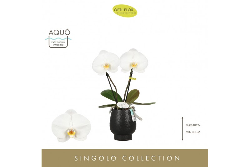Phalaenopsis wit Singolo & Co Tosha in Abruzzo Black Aquo2 bl. 2 tak/p