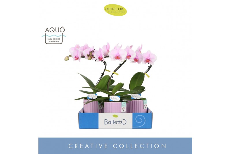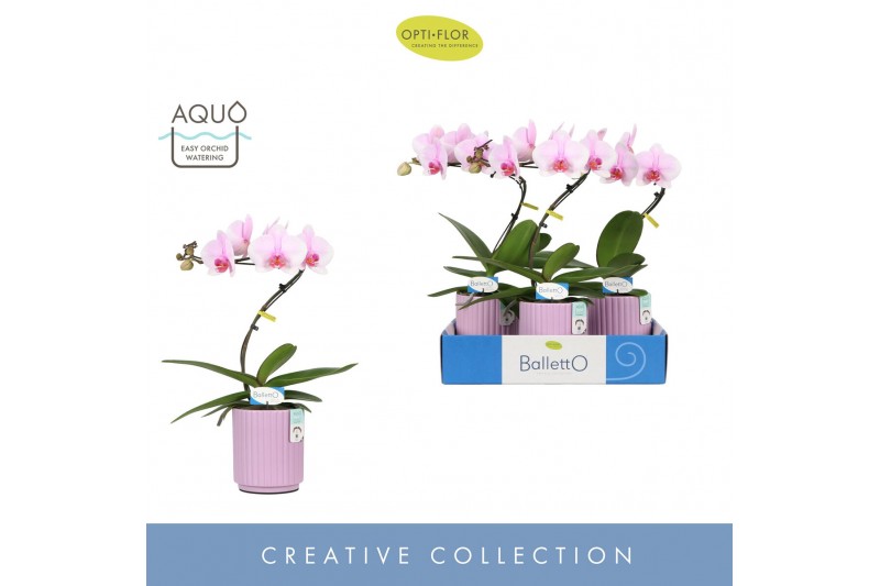 Phalaenopsis roze Balletto Curl 1 spike in Molise Lilac Aquo9 bl. 1 ta