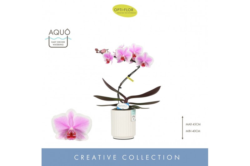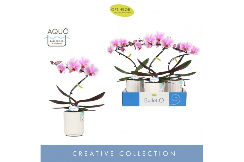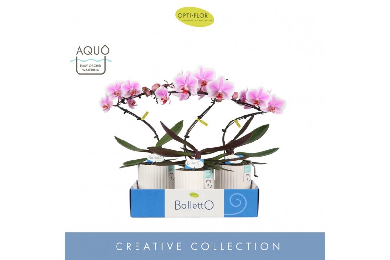 Phalaenopsis Balletto Spinturn 1 spike in Molise White Aquo 9 bl. 1 ta