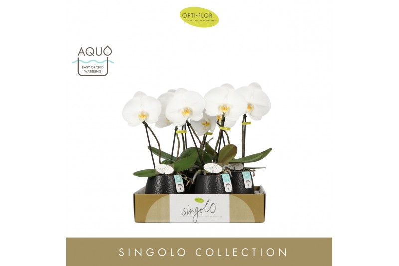 Phalaenopsis wit Singolo & Co Tosha in Abruzzo Black Aquo2 bl. 2 tak/p
