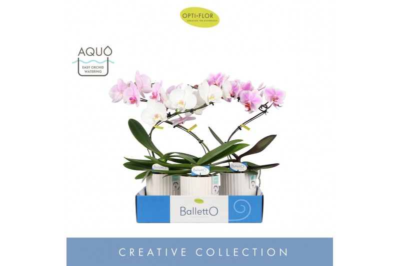 Phalaenopsis mix Balletto Mix 1 spike in Molise White Aquo9 bl. 1 tak/