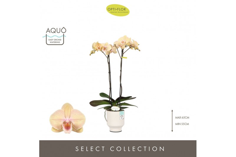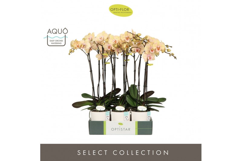 Phalaenopsis geel Optistar Parton 2 spike in Emilia White Aquo 15 bl.