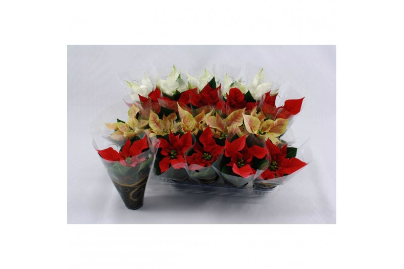 Euphorbia pul. mix Poinsettia Mix 6cm met Hoes1 bl.