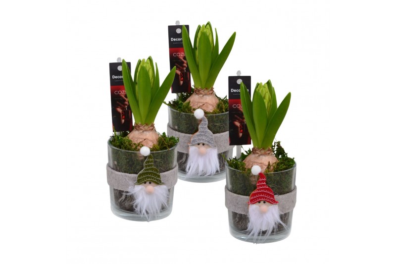 Arrangementen hyacinthus Hyacint Kerstglas met Gnoom HL13146WP [COZY]