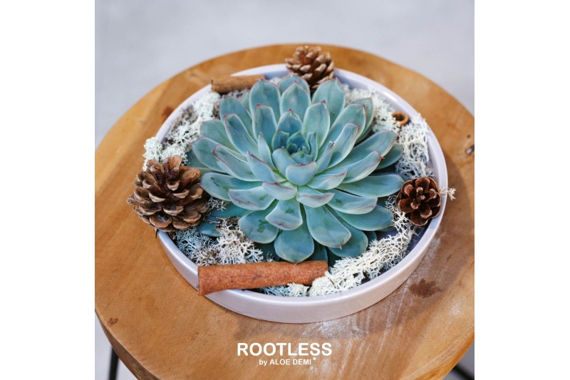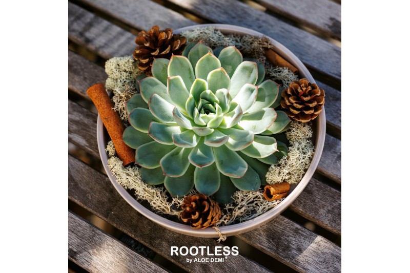 Arrangementen succulenten ROOTLESS Echeveria autumn, burgundy red bowl
