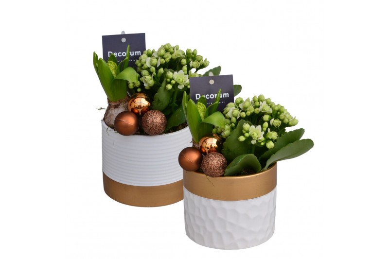 Arrangementen kerst Calandiva & Hyacint Wit Goud Keramiek HL23222WP [B