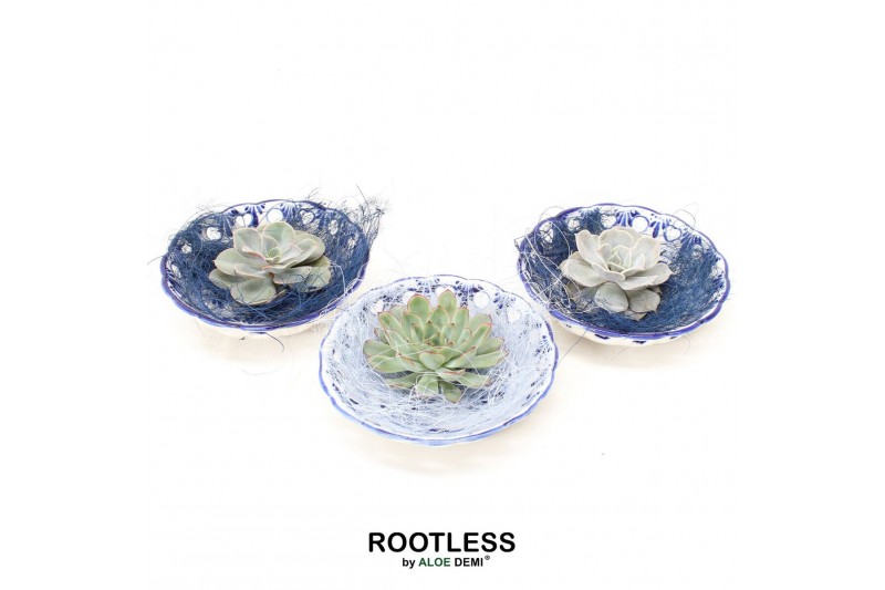 Arrangementen succulenten ROOTLESS Echeveria, Dutch Delft Blue bowl1 p