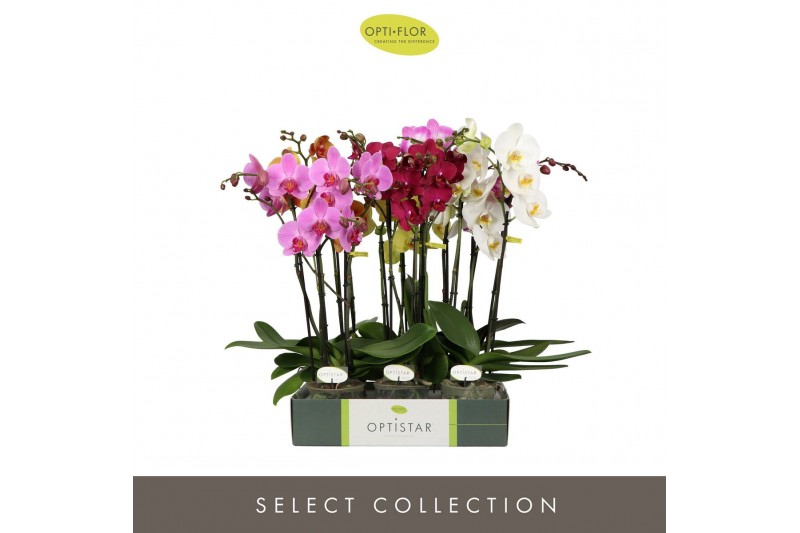 Phalaenopsis mix Optistar Hollywood Mix 3 spike 60 cm 18 bl. 3 tak/pln