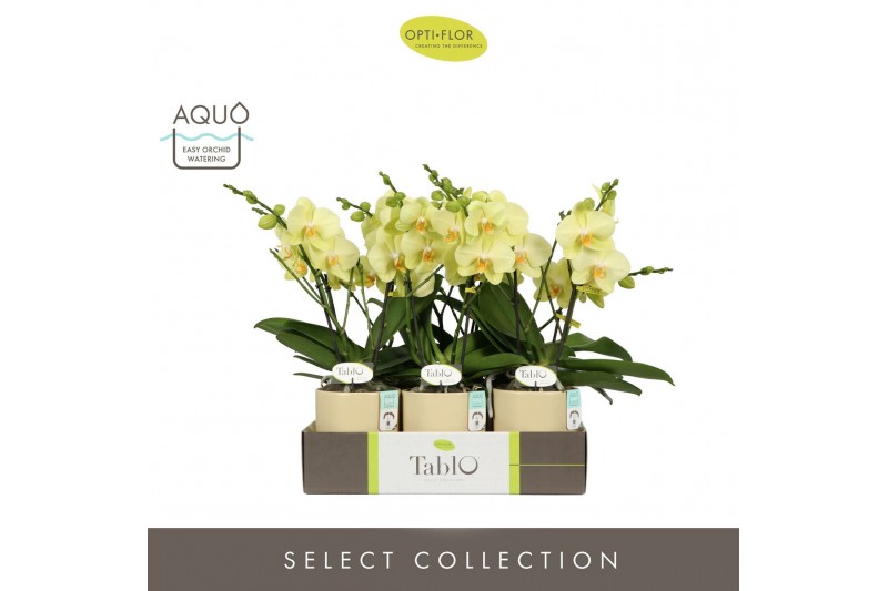 Phalaenopsis geel Tablo Limoncello 2 spike in Emilia Sand Aquo25 bl. 2