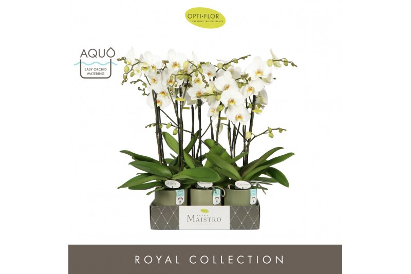 Phalaenopsis wit Maistro Beethoven 2 spike 60 cm in Emilia Green Aquo