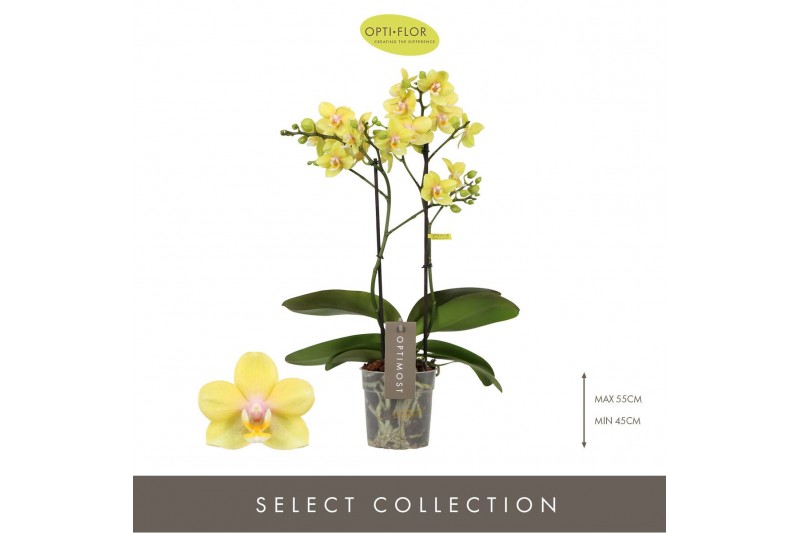 Phalaenopsis multiflora geel Optimost Hera 2 spike25 bl. 2 tak/plnt 50