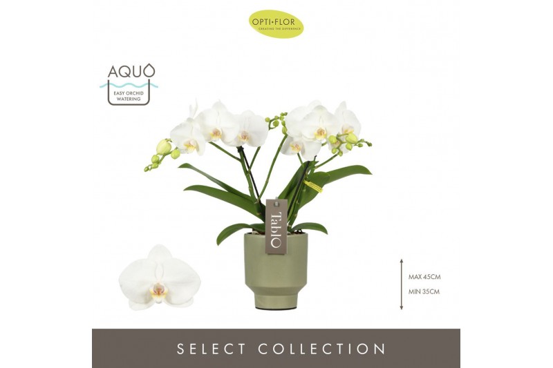 Phalaenopsis wit Tablo Champagne 2 spike in Emilia Green Aquo 25 bl. 2