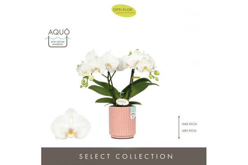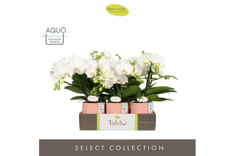 Phalaenopsis wit Tablo Champagne 2 spike in Molise Salmon Aquo 25 bl.