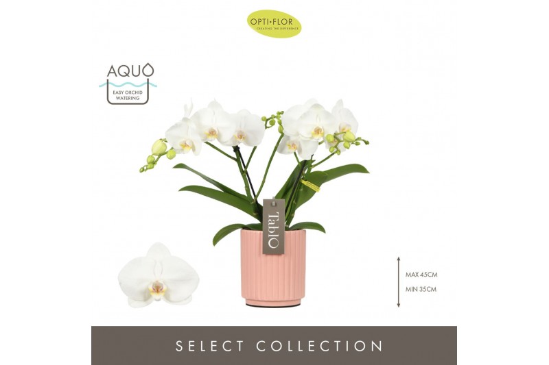 Phalaenopsis wit Tablo Champagne 2 spike in Molise Salmon Aquo 25 bl.