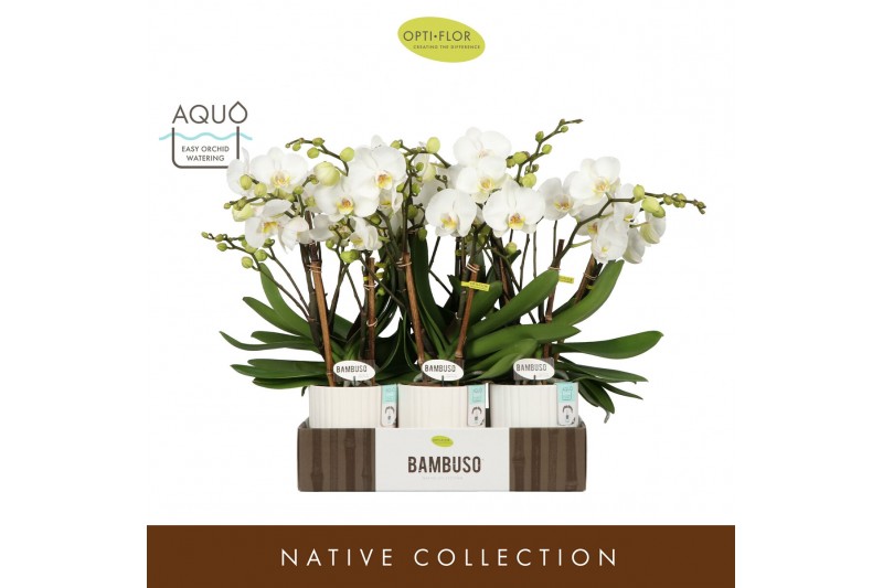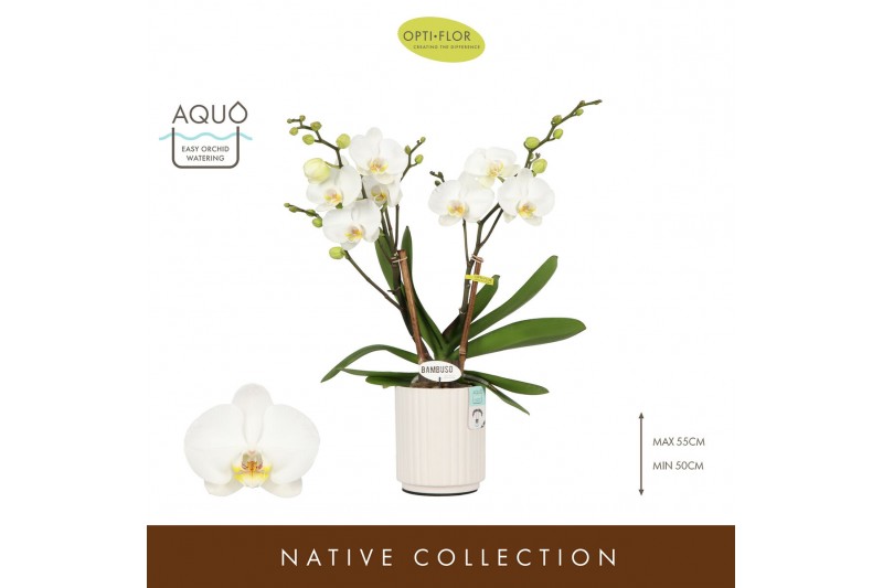 Phalaenopsis wit Bambuso Inyo 2 spike in Molise White Aquo30 bl. 2 tak