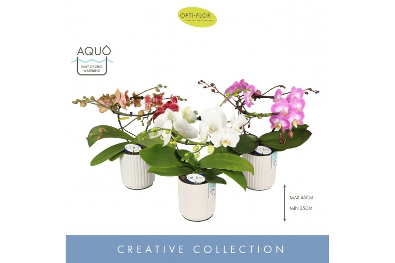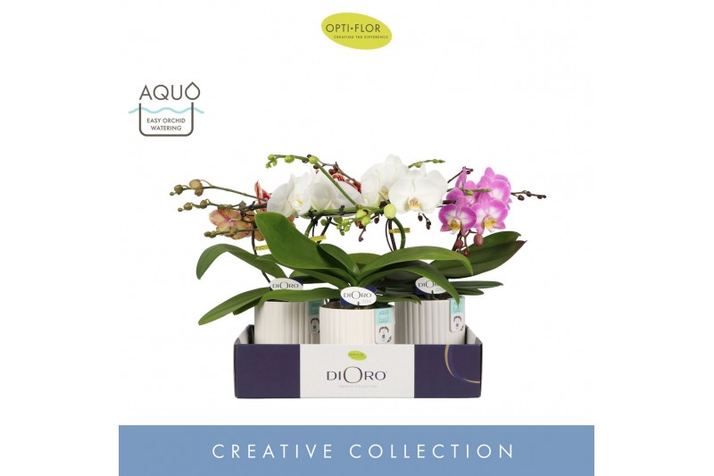 Phalaenopsis mix Dioro Mix 2 spike in Molise White Aquo16 bl. 2 tak/pl