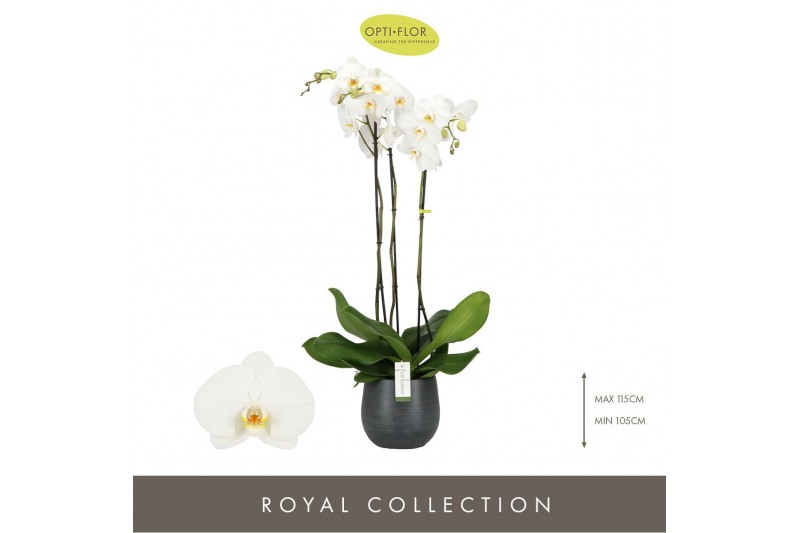 Phalaenopsis wit Fortuno Alto 3 spike in Esra Graphite18 bl. 3 tak/pln
