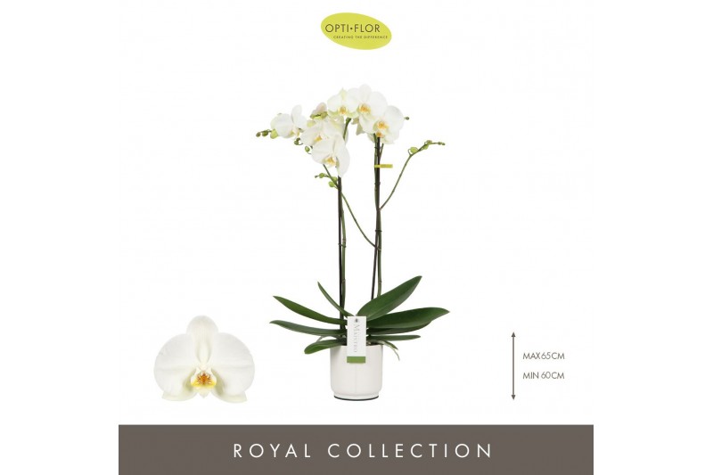 Phalaenopsis wit Maistro Bach 2 spike 60 cm in Lazio White 18 bl. 2 ta