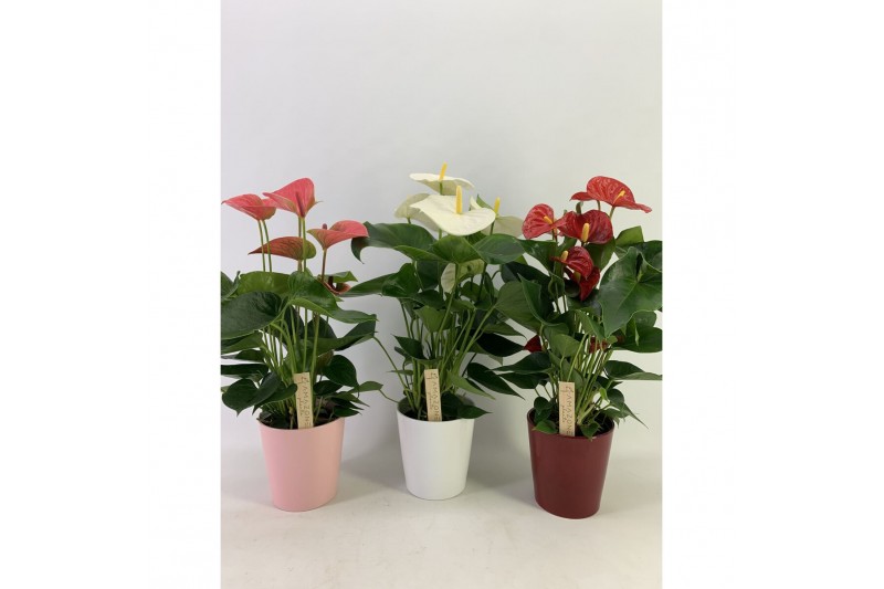 Anthurium andr. mix 3 kleuren Anthurium Mix 12cm keramiek5 bl.
