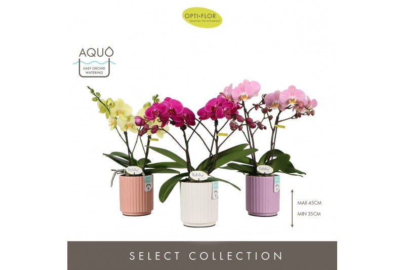 Phalaenopsis mix Tablo Mix 2 spike in Molise Mix Aquo25 bl. 2 tak/plnt