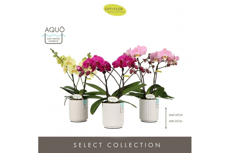 Phalaenopsis mix Tablo Mix 2 spike in Molise White Aquo 25 bl. 2 tak/p