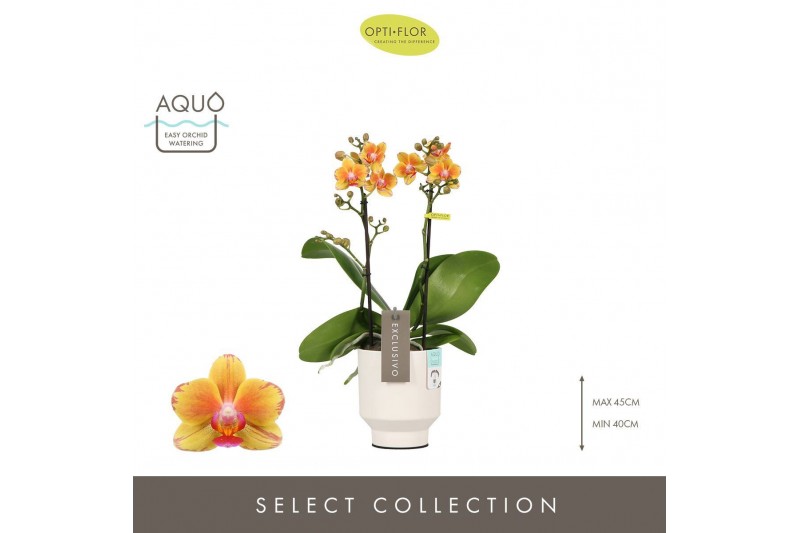 Phalaenopsis multiflora oranje Exclusivo Juno 2 spike in Emilia White