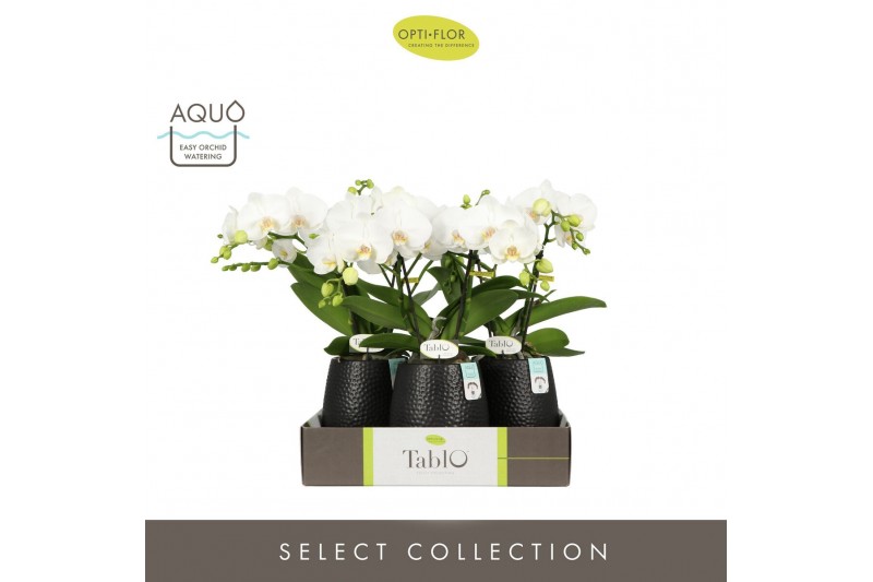 Phalaenopsis wit Tablo Champagne 2 spike in Abruzzo Black Aquo25 bl. 2