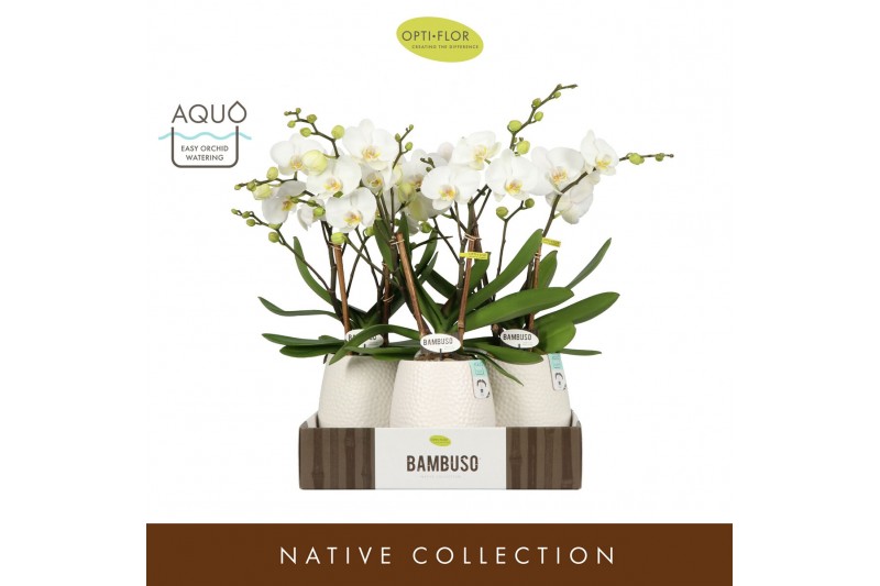 Phalaenopsis wit Bambuso Inyo 2 spike in Abruzzo White Aquo 30 bl. 2 t