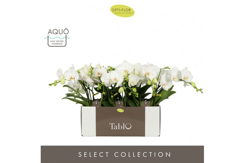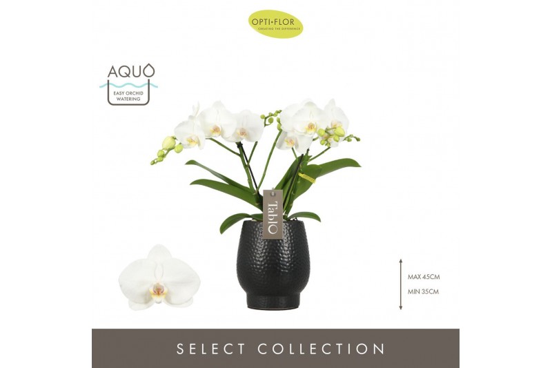 Phalaenopsis wit Tablo Champagne 2 spike in Abruzzo Black Aquo 25 bl.