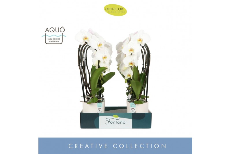 Phalaenopsis wit Fontano Versailles 2 spike in Emilia White Aquo 15 bl