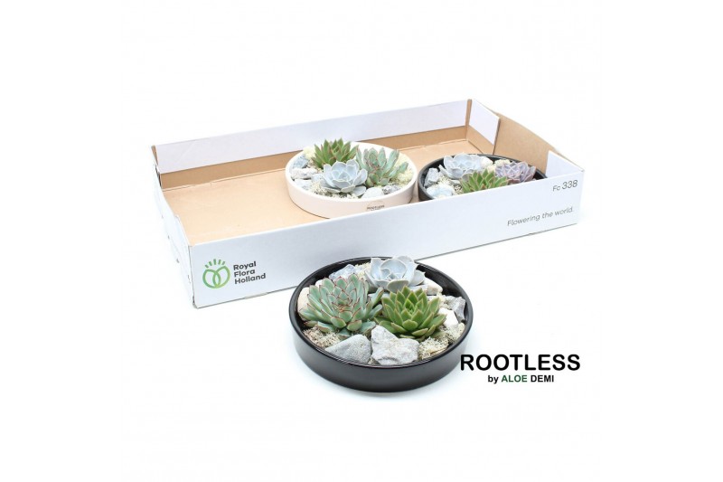 Arrangementen succulenten ROOTLESS Echeveria garden, Panda bowl3 pp