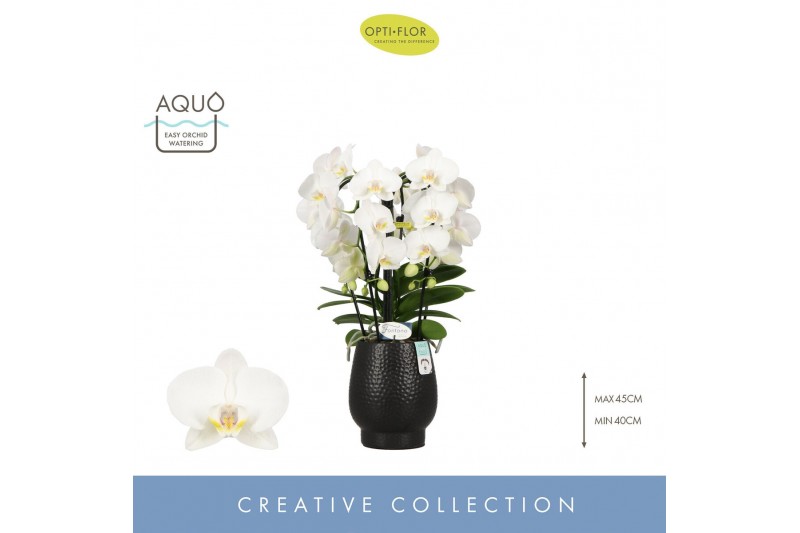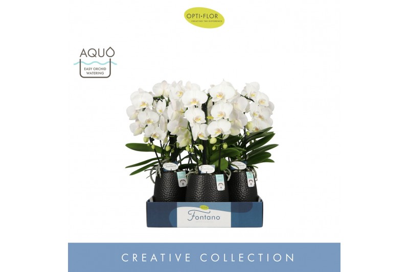 Phalaenopsis wit Fontano Bellagio 5 spike in Abruzzo Black Aquo40 bl.