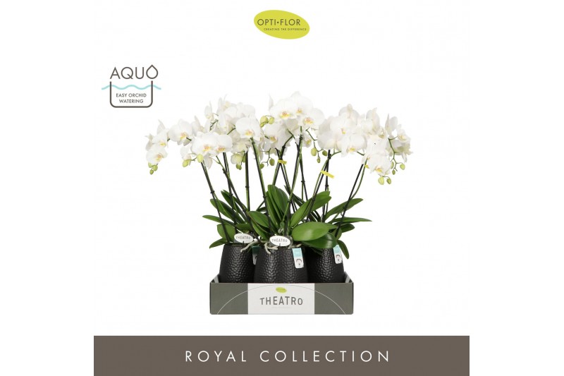 Phalaenopsis wit Theatro Jazz 4 spike in Abruzzo Black Aquo 21 bl. 4 t