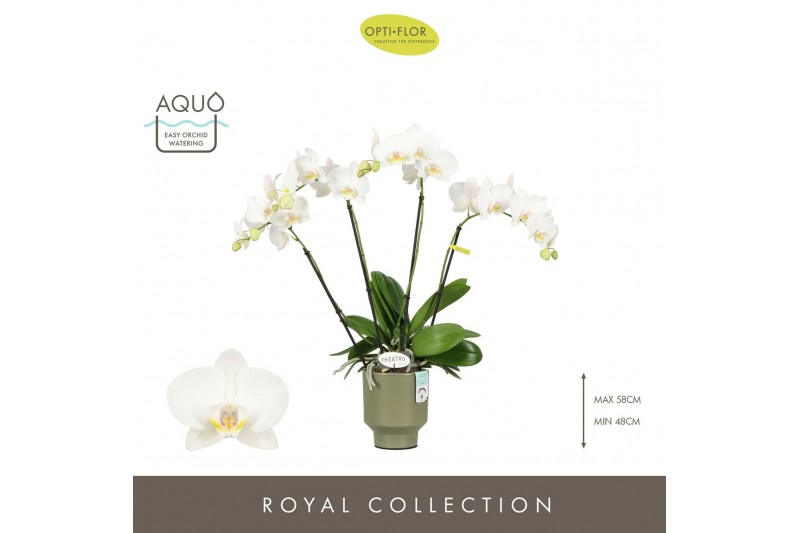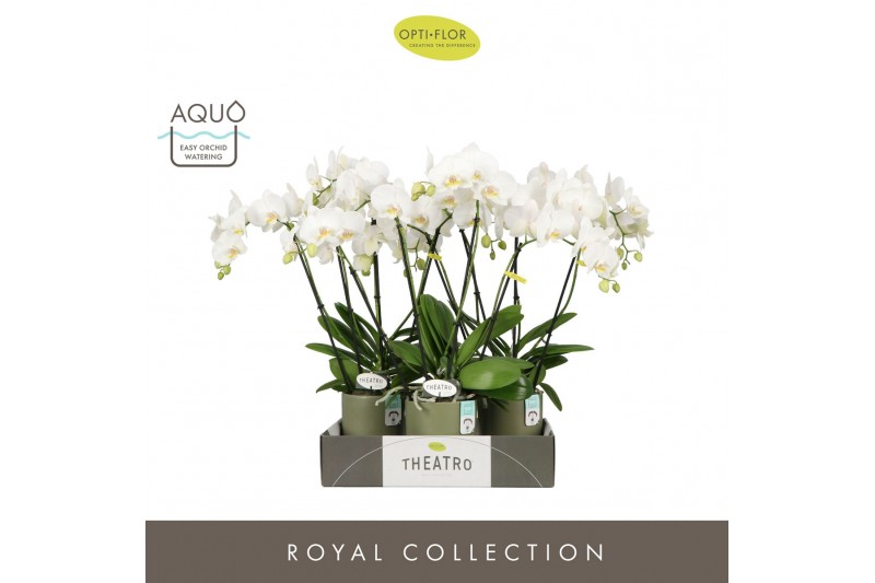 Phalaenopsis wit Theatro Jazz 4 spike in Emilia Green Aquo 21 bl. 4 ta