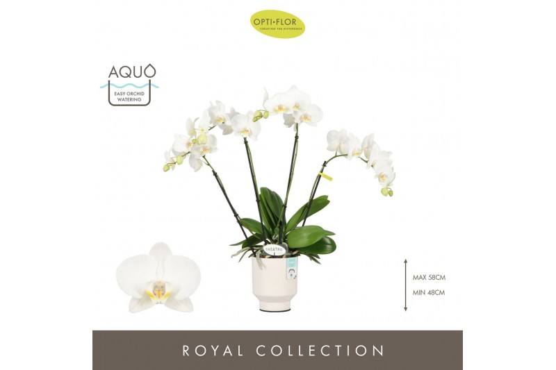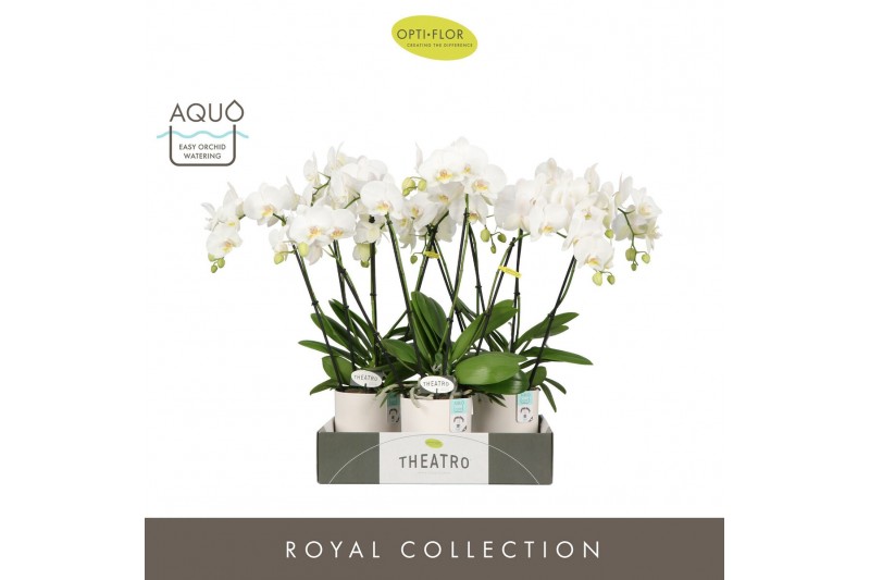 Phalaenopsis wit Theatro Jazz 4 spike in Emilia White Aquo 21 bl. 4 ta