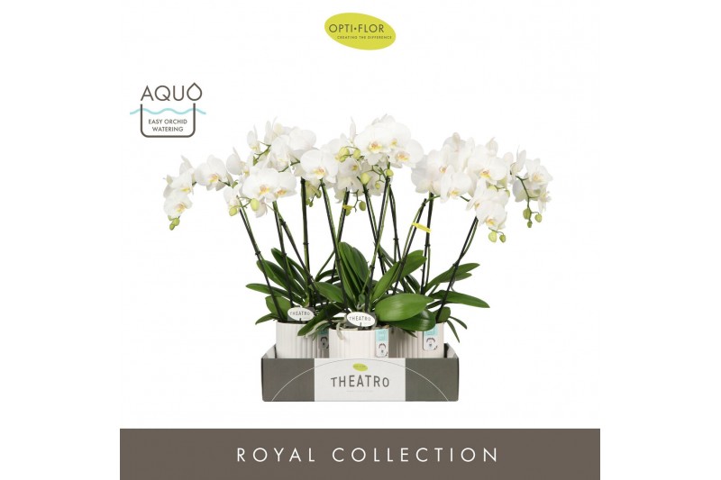 Phalaenopsis wit Theatro Jazz 5 spike in Molise White Aquo 24 bl. 5 ta