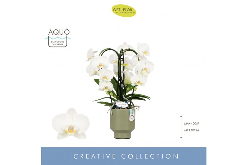 Phalaenopsis wit Fontano Bellagio 3 spike in Emilia Green Aquo 25 bl.
