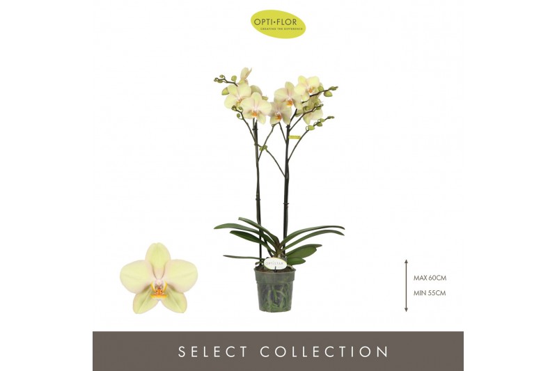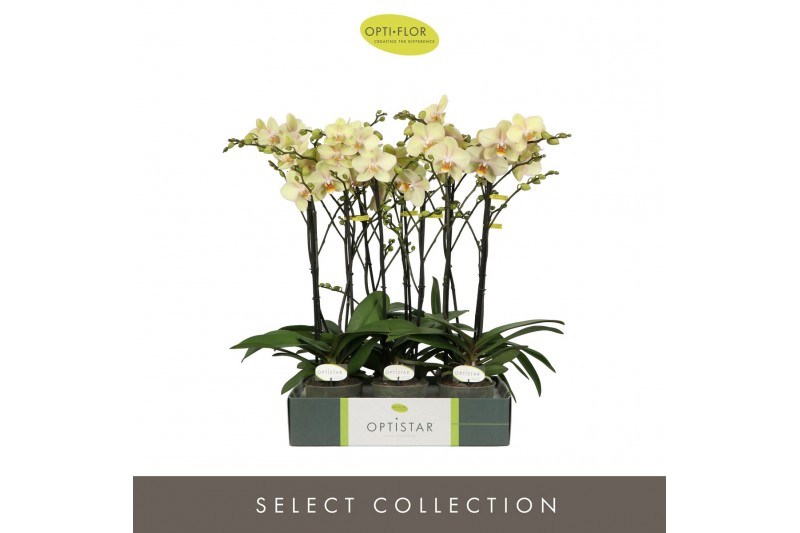 Phalaenopsis geel Optistar Shakira 2 spike15 bl. 2 tak/plnt