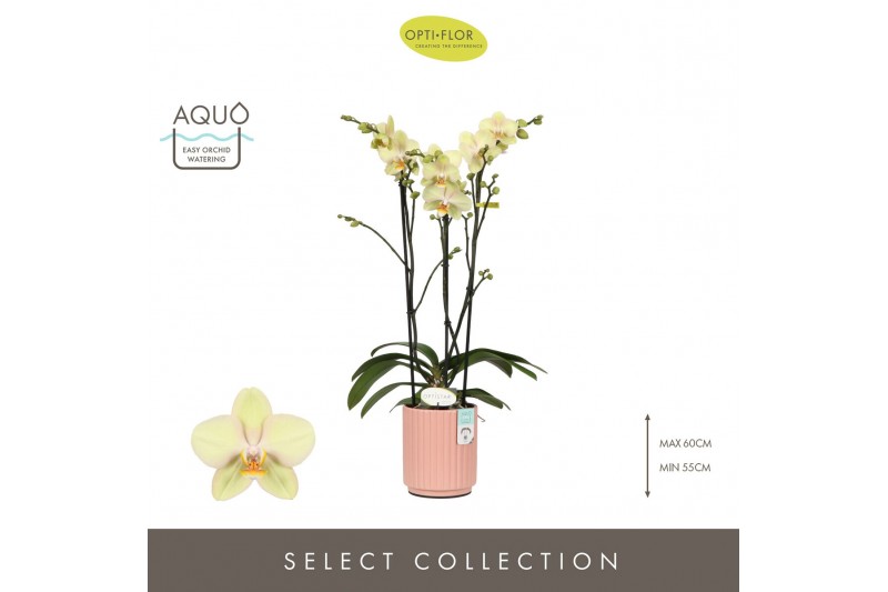 Phalaenopsis geel Optistar Shakira 3 spike in Molise Salmon Aquo 18 bl
