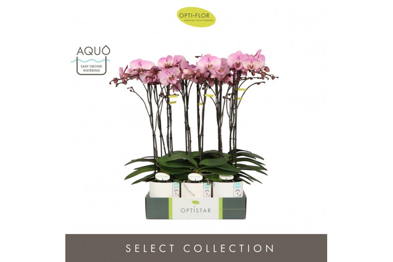Phalaenopsis roze Optistar Madonna 2 spike in Molise White Aquo15 bl.