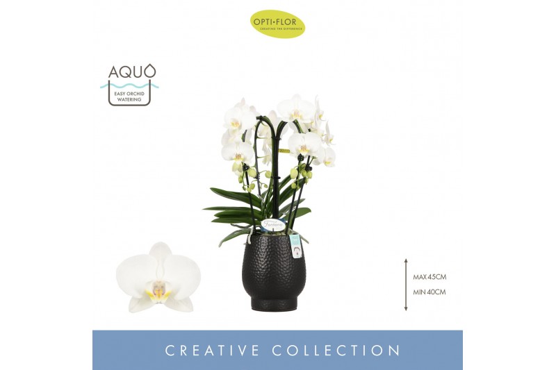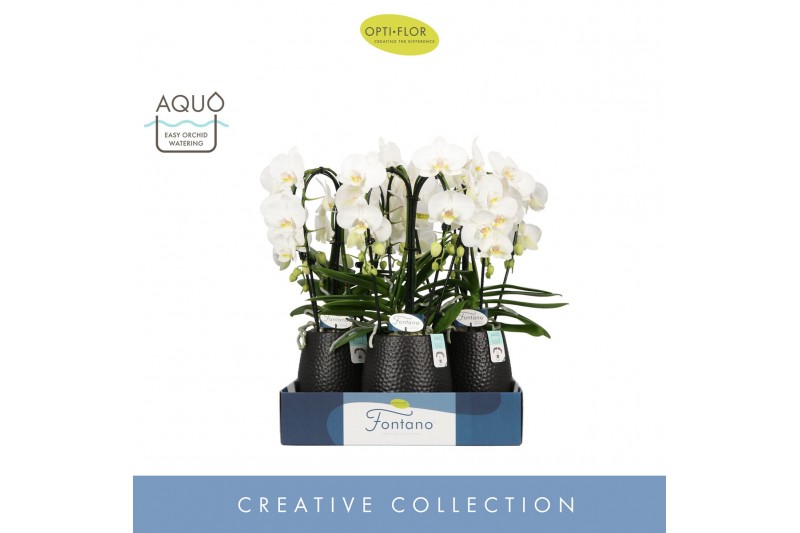Phalaenopsis wit Fontano Bellagio 4 spike in Abruzzo Black Aquo30 bl.