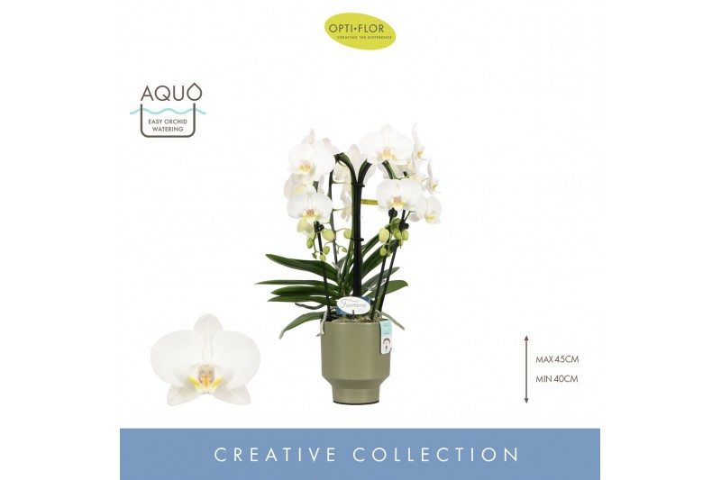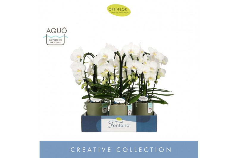 Phalaenopsis wit Fontano Bellagio 4 spike in Emilia Green Aquo 30 bl.