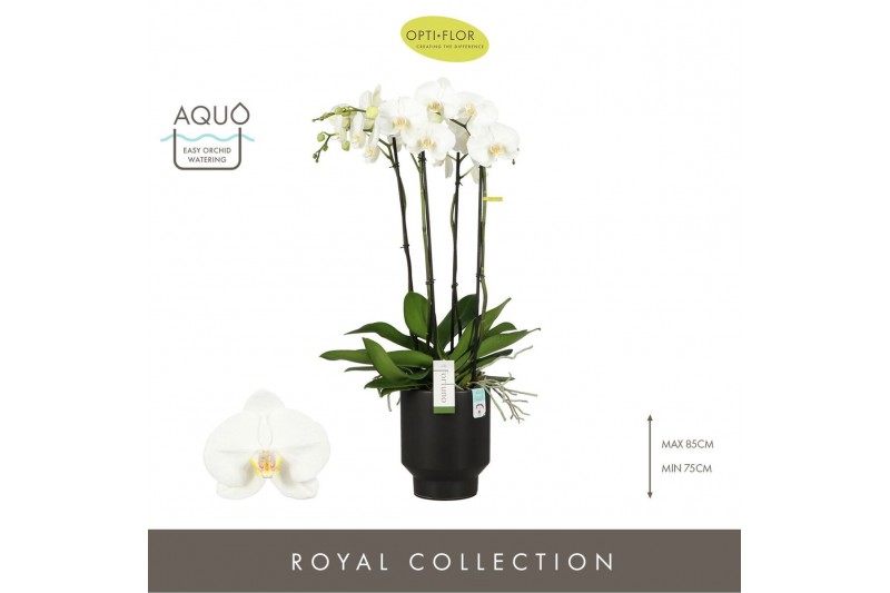 Phalaenopsis wit Fortuno Largo 4 spike in Emilia Dark Brown Aquo 24 bl